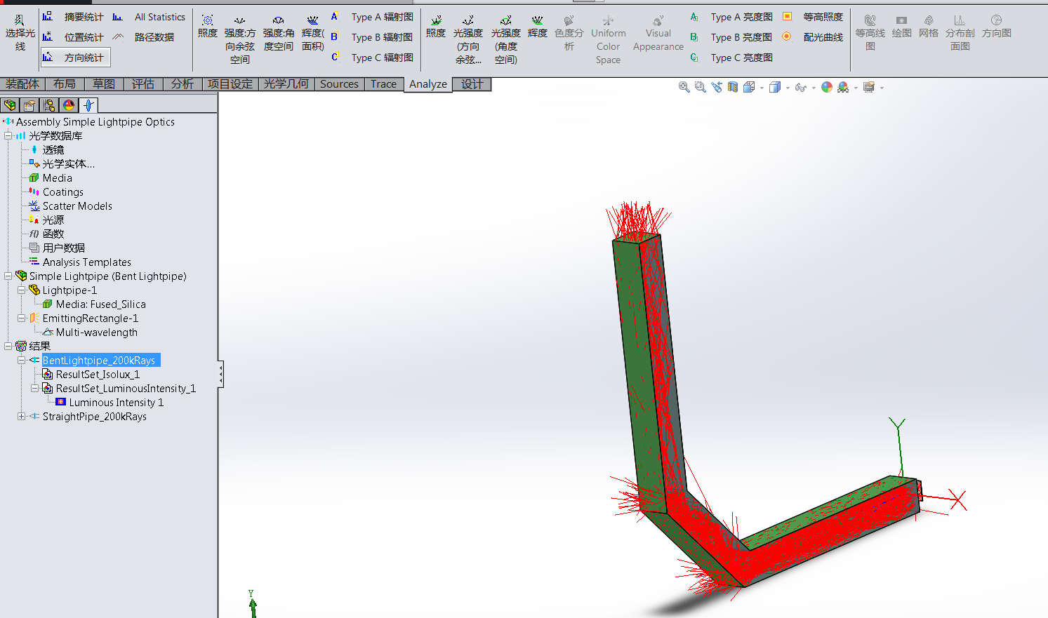 可设置光线追迹后的显示特性,如光线的颜色、数目等 |