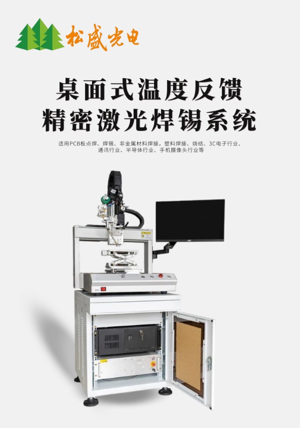 松盛光电激光锡焊系统由多轴伺服模组,实时温度反馈系统,CCD同轴定位系统以及半导体激光器所构成;松盛光电通过多年焊接工艺摸索,自主开发的智能型软钎焊软件,支持导入多种格式文件。独创PID在线温度调节反馈系统,能有效的控制恒温焊接,确保焊接良品率与精密度。本产品适用面广,可应用于在线生产,也可独立式加工。拥有以下特点优势: