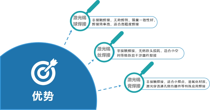 激光锡球焊接:非接触焊接,无助焊剂,锡量一致性好,焊接效率高,适合高精度焊接