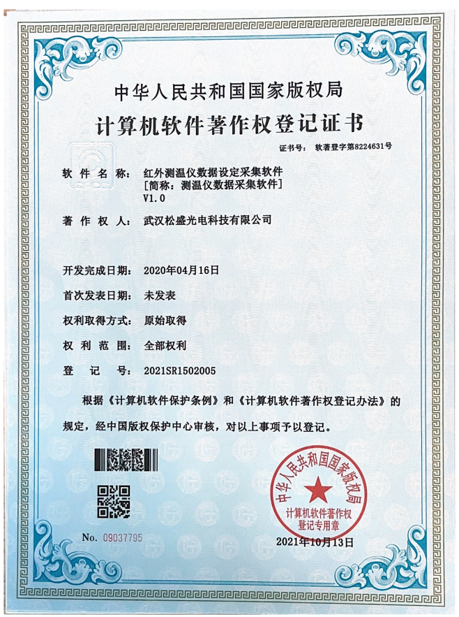 红外测温仪数据设定采集软件V1.0证书