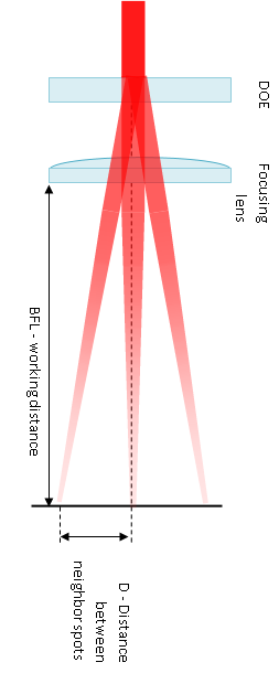In the short beam into the focus system, the sub-beam focused to the work surface, focusing spot spacing a, the width of the working width b.